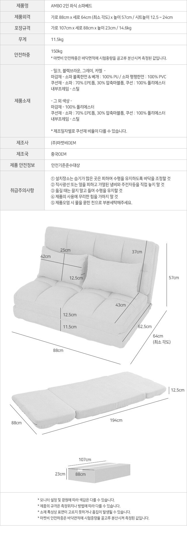[마켓비] 앰보 2인 좌식 소파베드