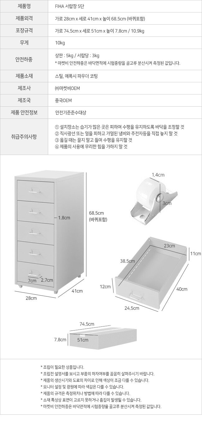 [마켓비] 피하 서랍장 5단