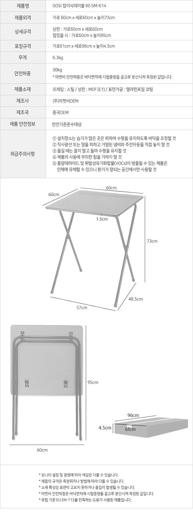 [마켓비] GOSI 접이식테이블 60 SM-614