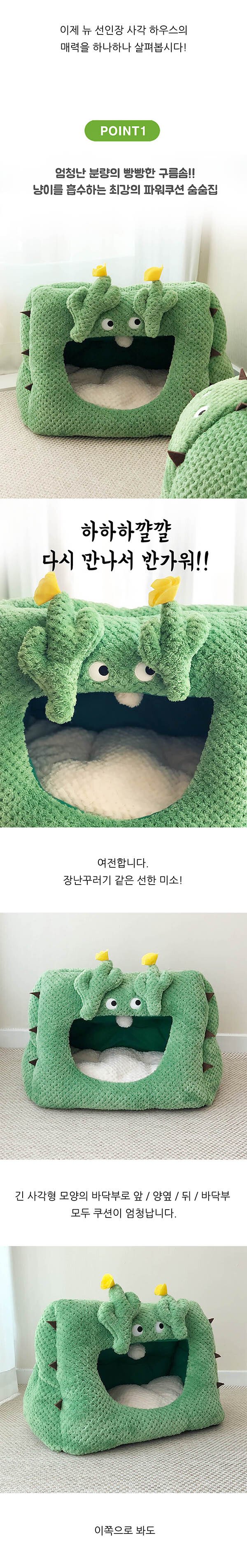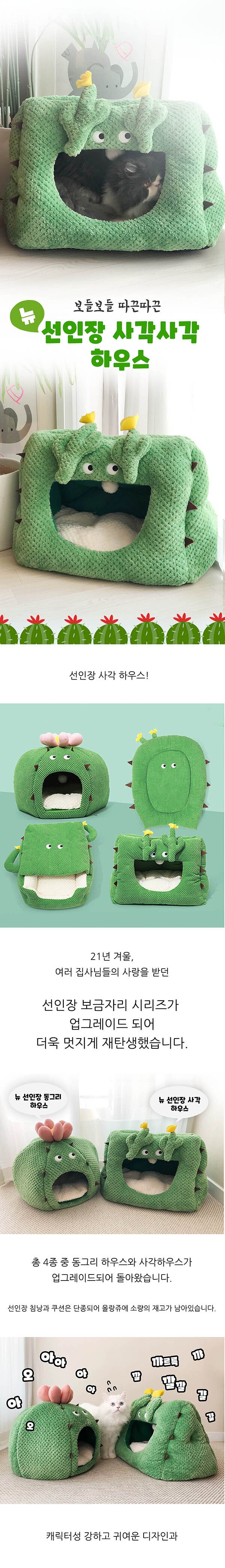 [올랑쥬] 고양이 초소형견 추위 숨숨집 잠 자리 보온 겨울 동굴 집 선인장 사각 하우스
