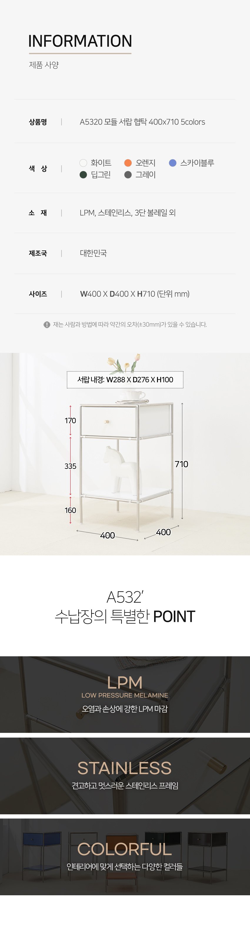 [히트가구] A5320 모듈 서랍 협탁 400×710 5colors