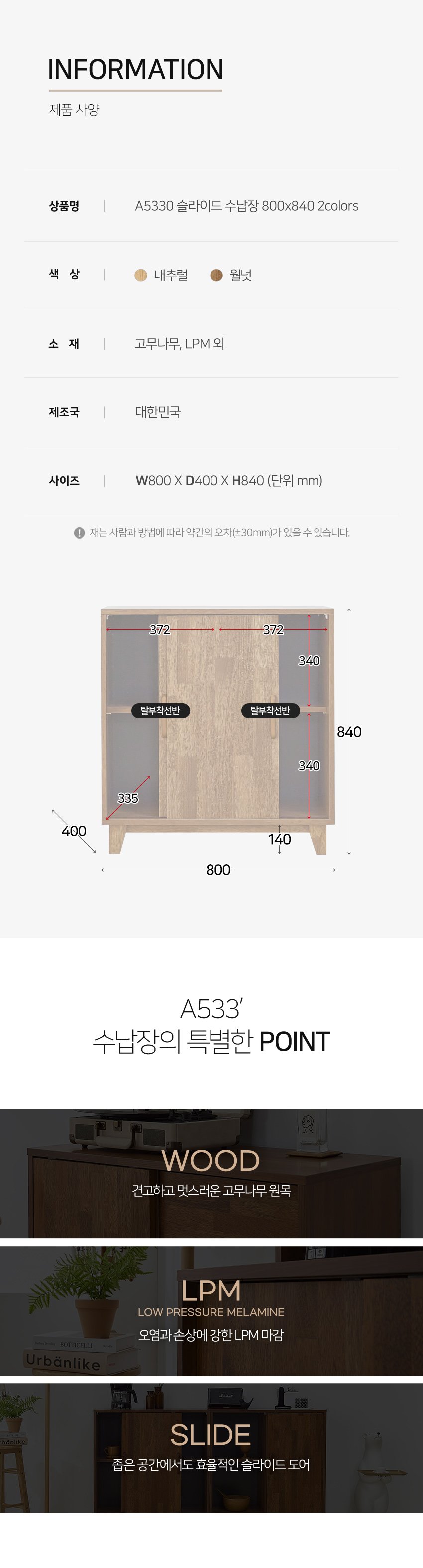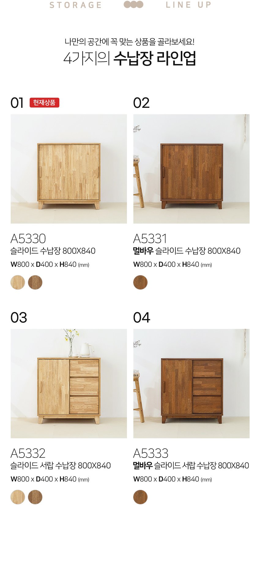 [히트가구] A5330 슬라이드 수납장 800×840 2colors