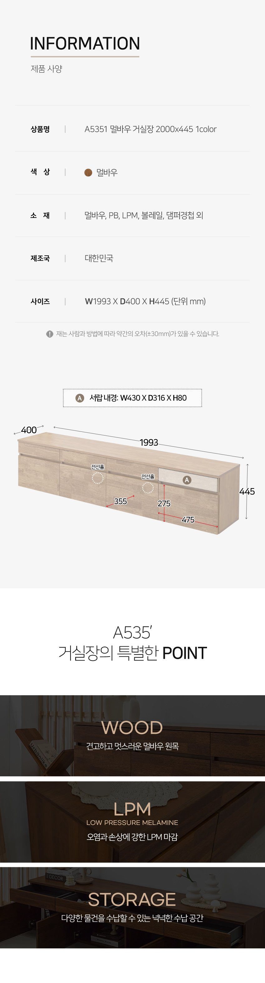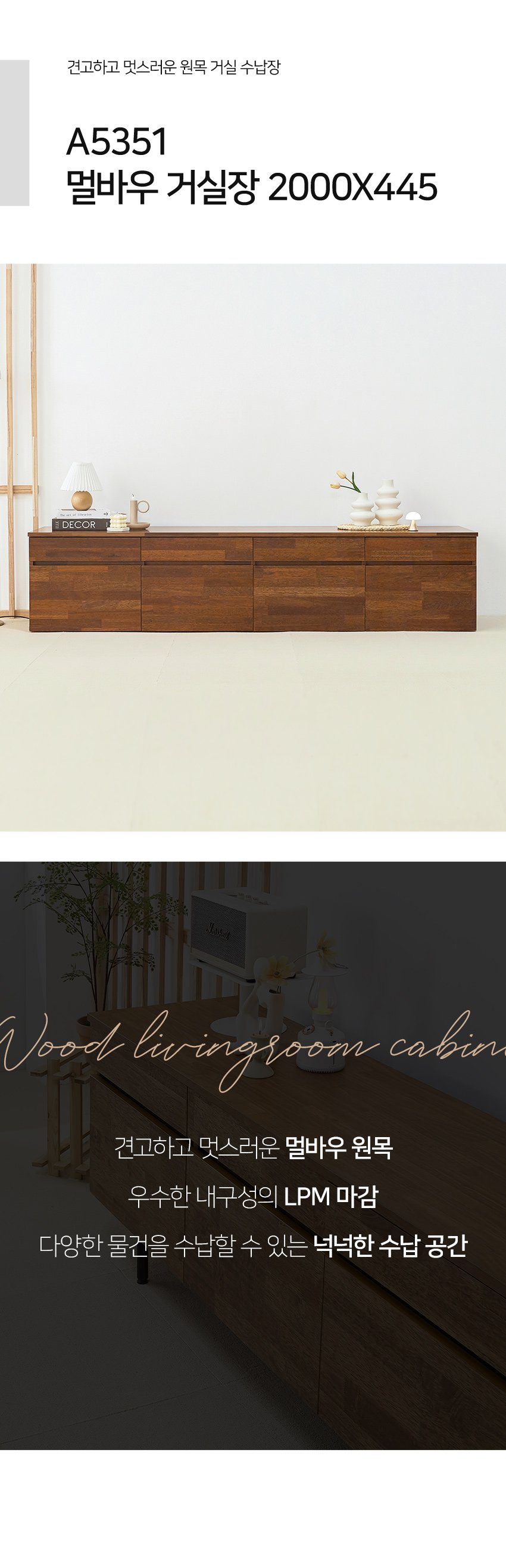 [히트가구] A5351 멀바우 거실장 2000×445 1color