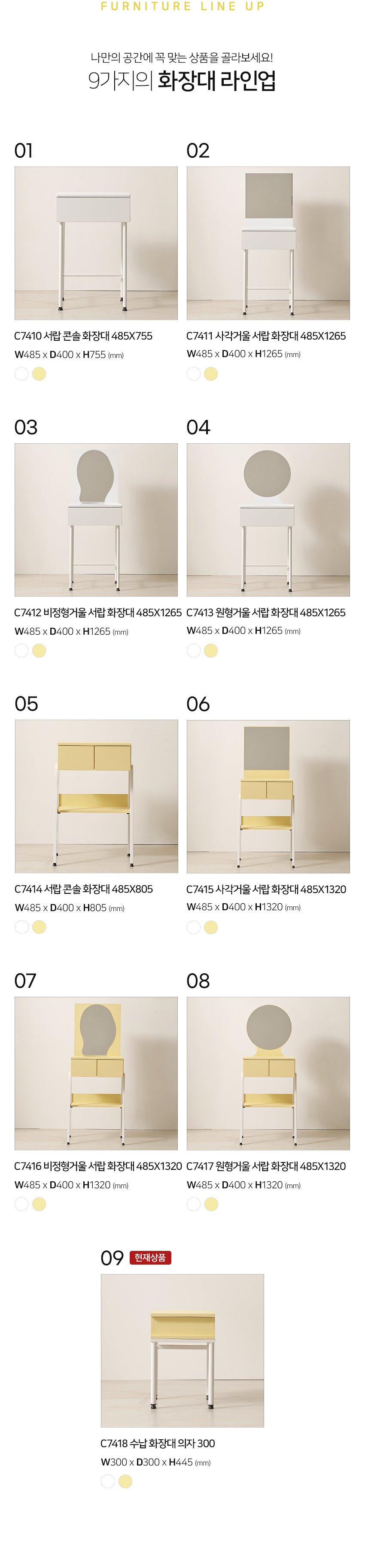 [히트가구] C7418 수납 화장대 의자 300 2colors