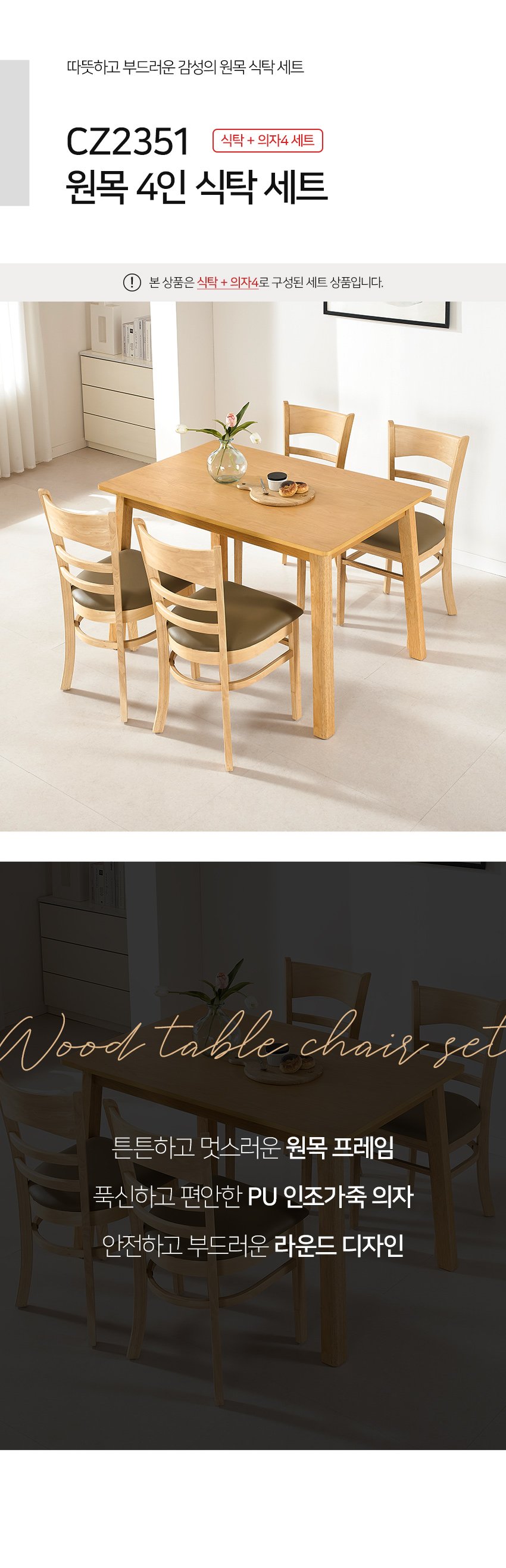 [히트가구] CZ2351 원목 4인 식탁 세트 2colors
