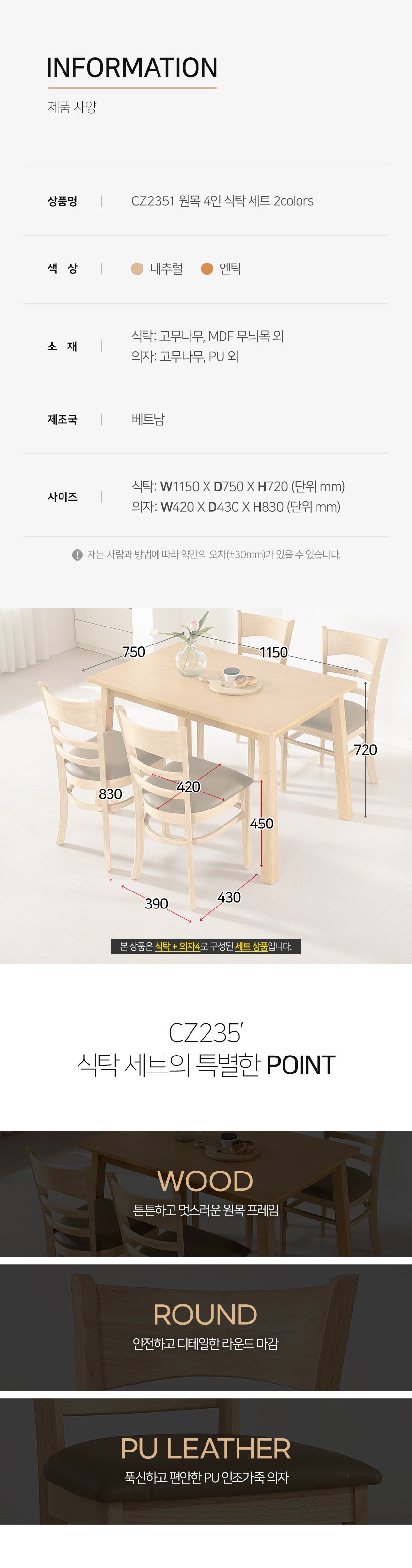 “[히트가구] CZ2351 원목 4인 식탁 세트 2colors”의 첫 상품평을 남겨 주세요