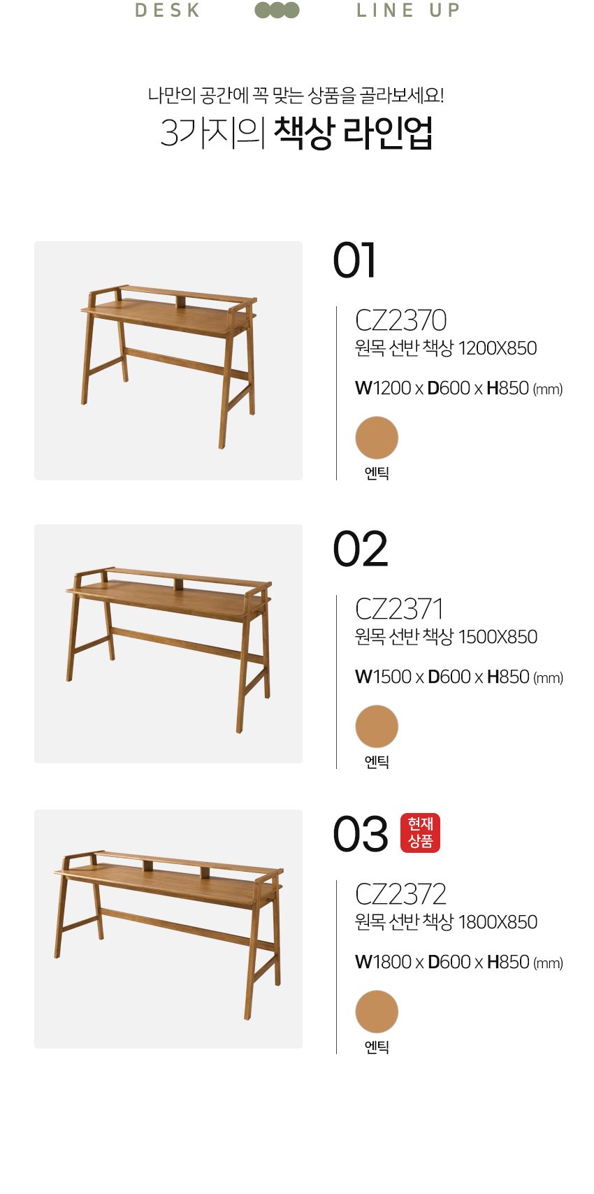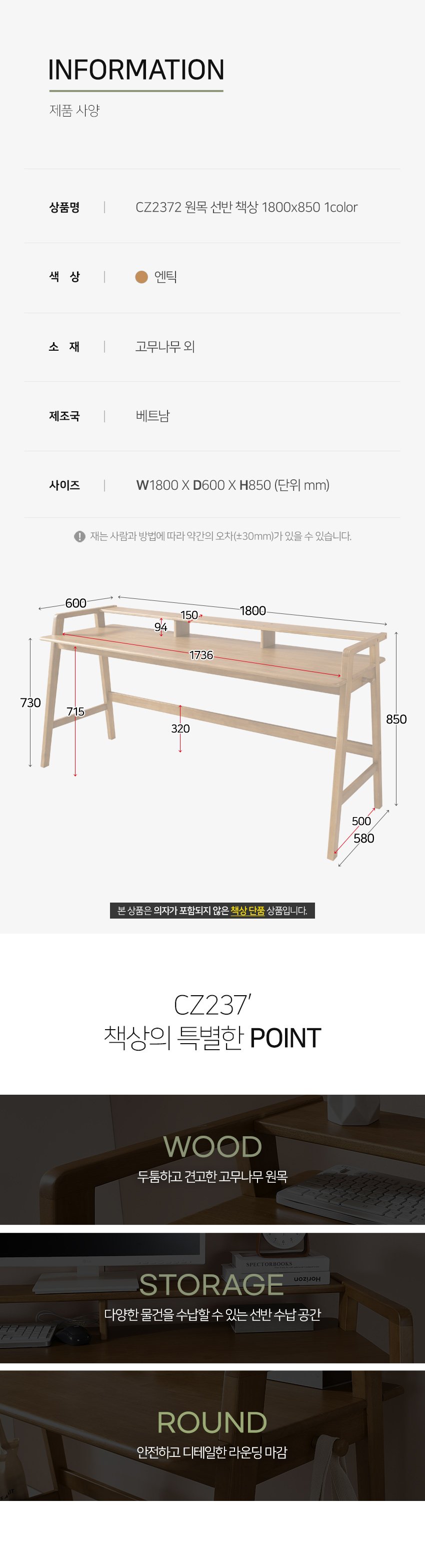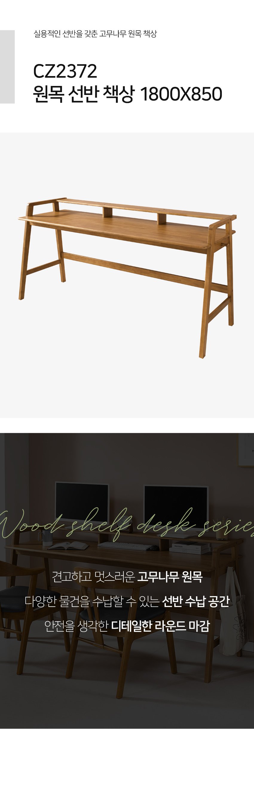 [히트가구] CZ2372 원목 선반 책상 1800×850 1color
