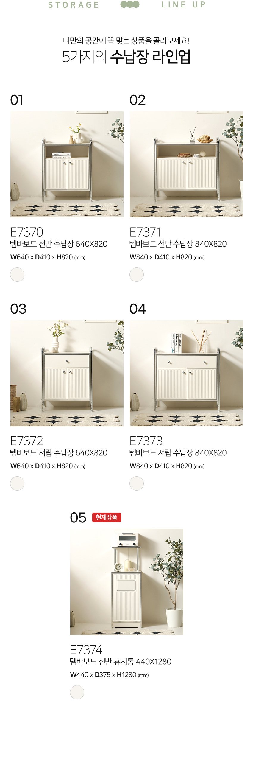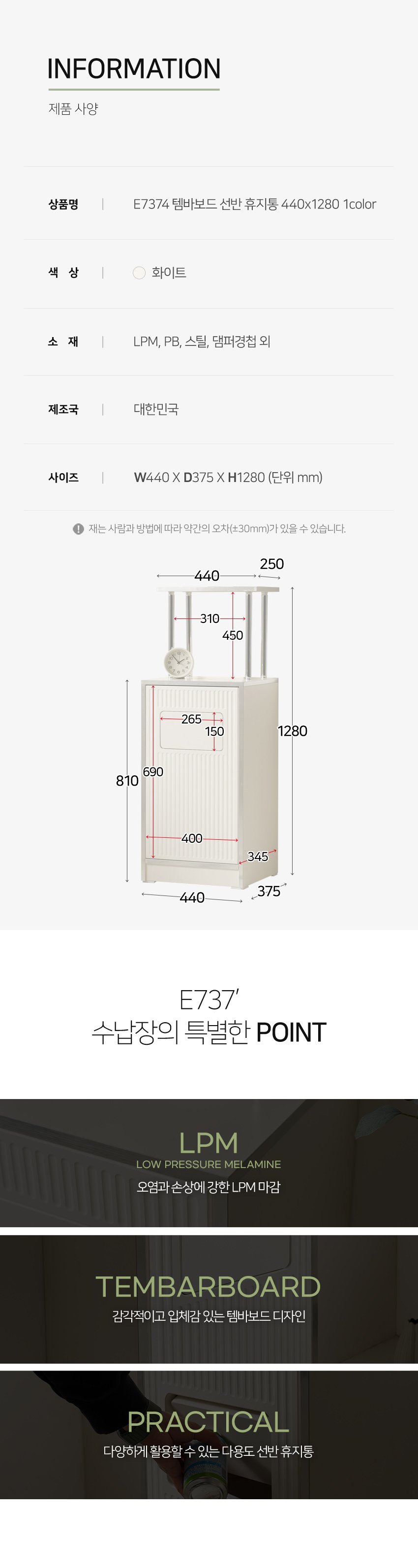 [히트가구] E7374 템바보드 선반 휴지통 440×1280 1color