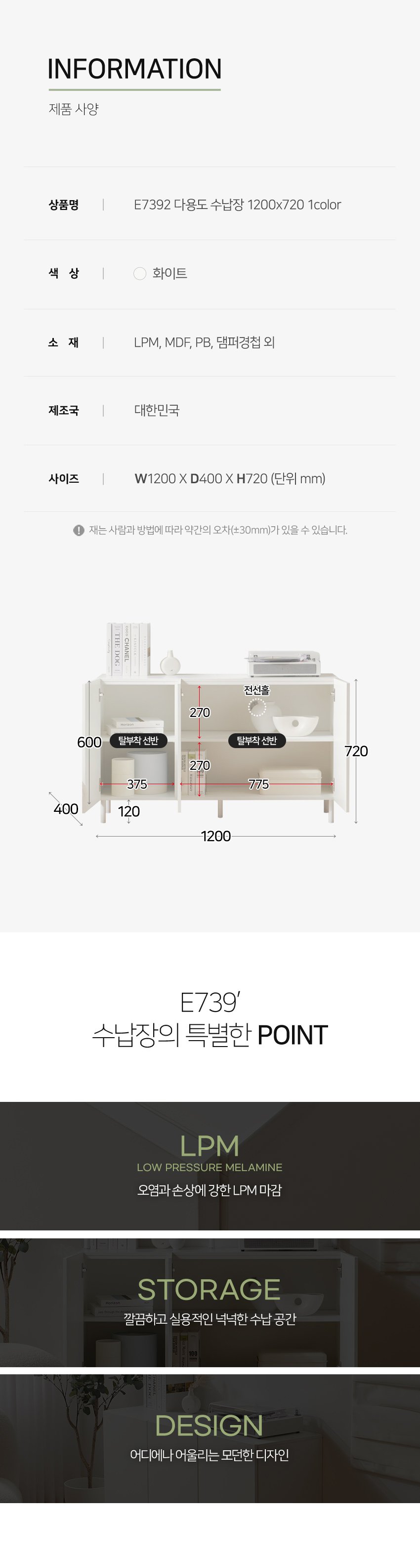 [히트가구] E7392 다용도 수납장 1200×720 1color