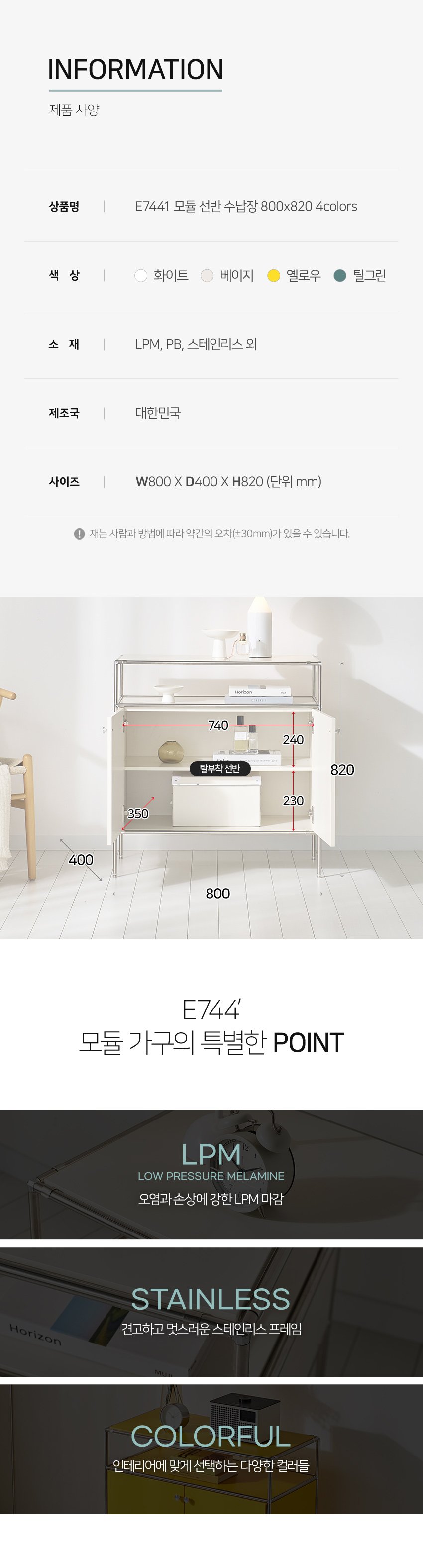 [히트가구] E7441 모듈 선반 수납장 800×820 4colors