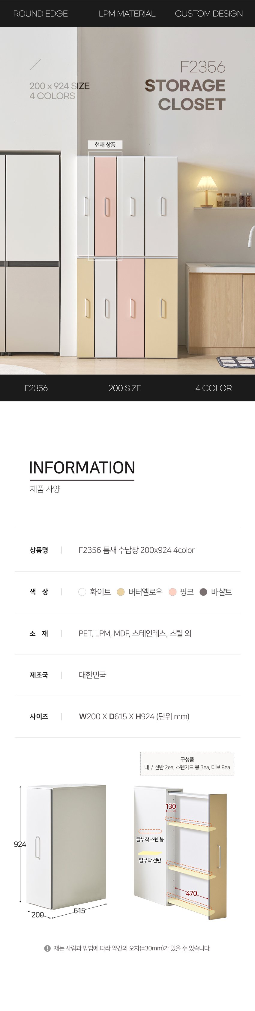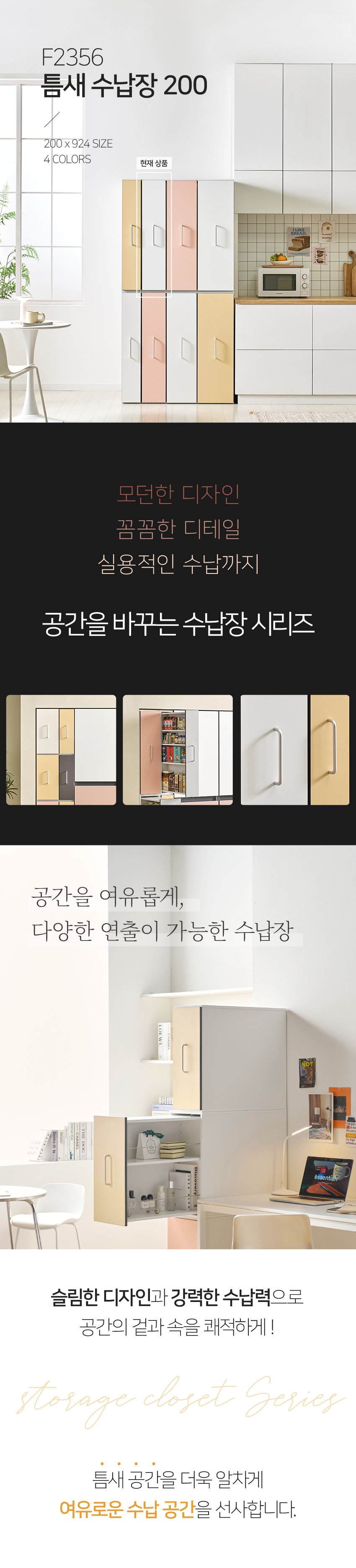 [히트가구] F2356 틈새 수납장 200×924 4color