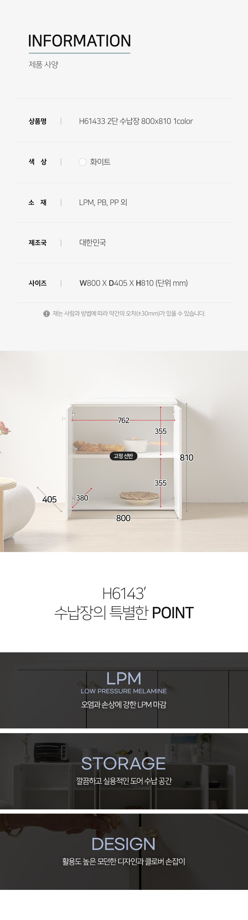 [히트가구] H61433 2단 수납장 800×810 1color