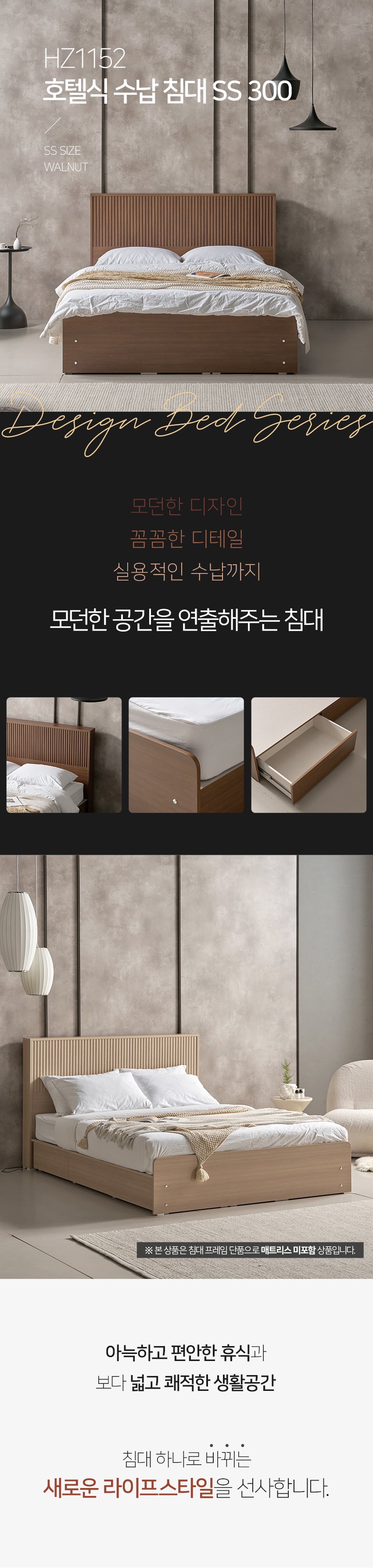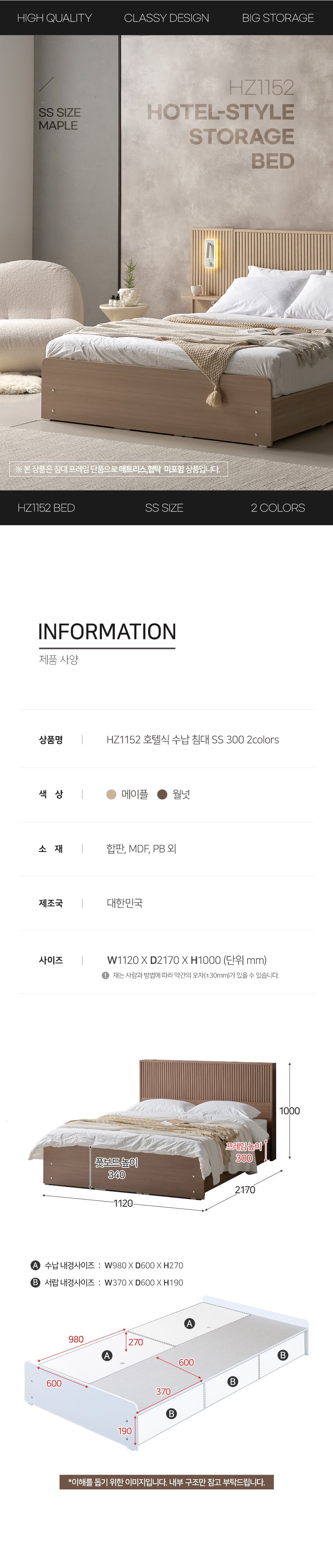 [히트가구] HZ1152 호텔식 수납 침대 SS 300 2colors