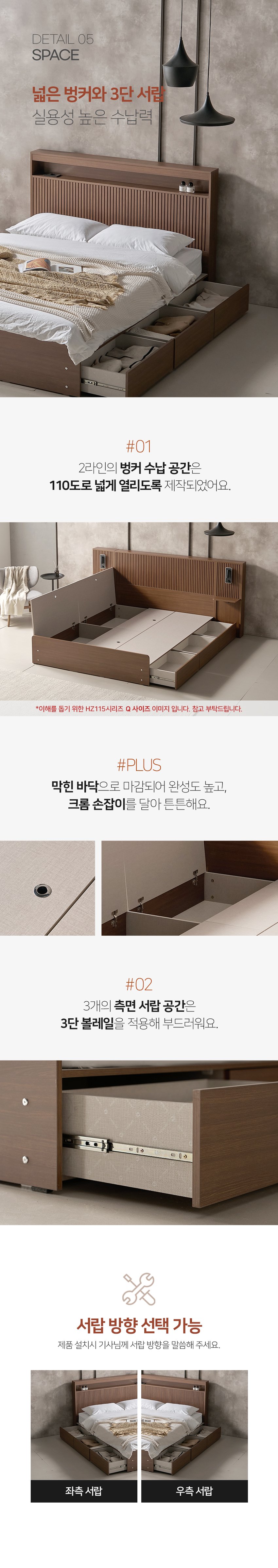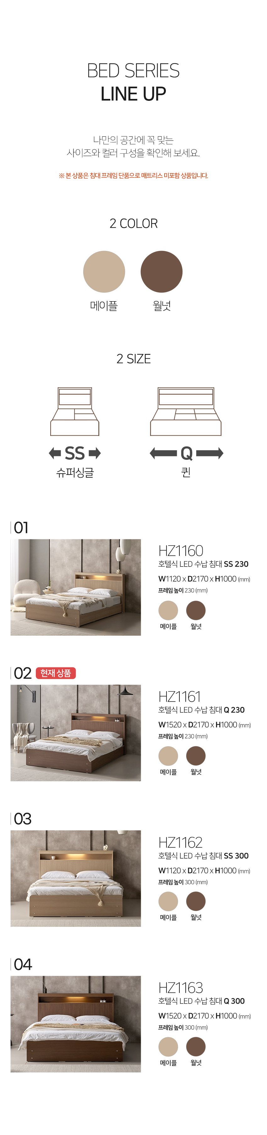 [히트가구] HZ1161 호텔식 LED 수납 침대 Q 230 2colors