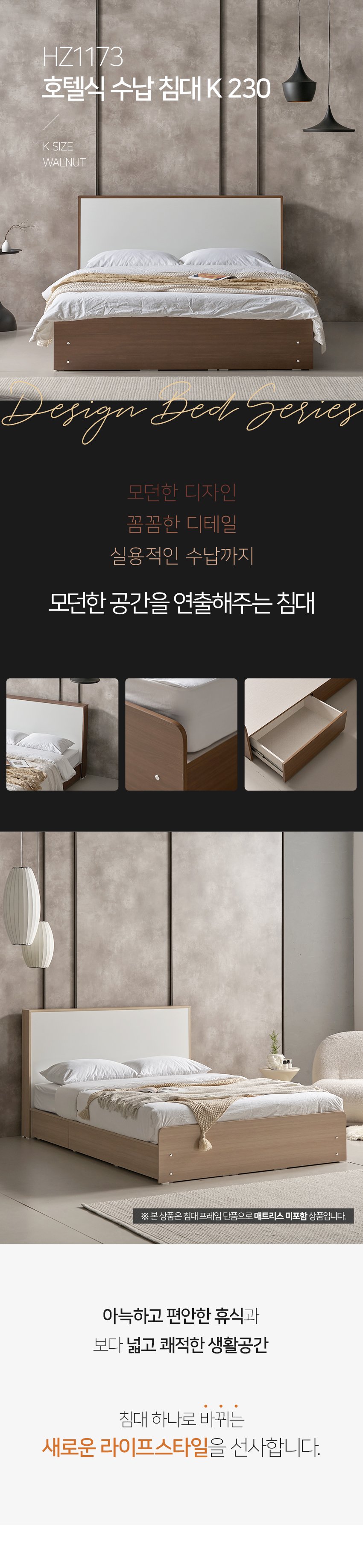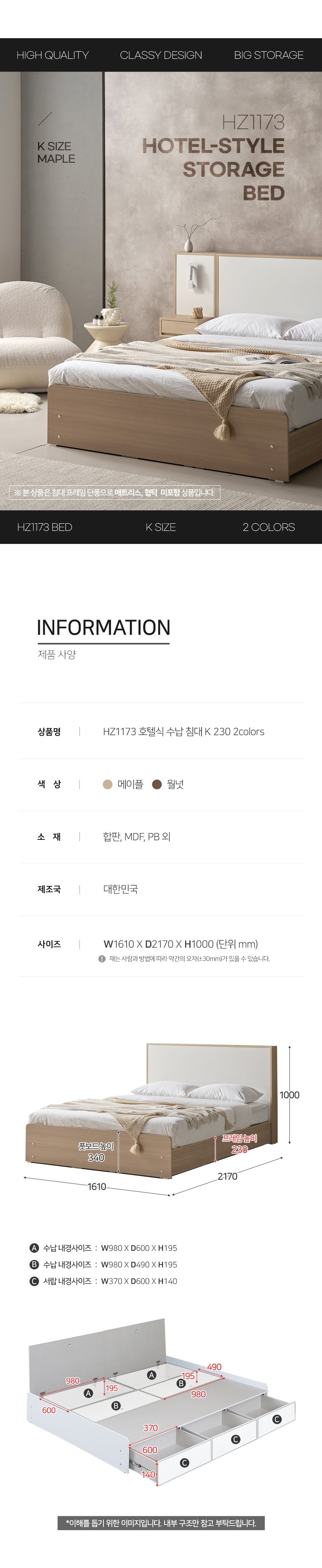 [히트가구] HZ1173 호텔식 수납 침대 K 230 2colors