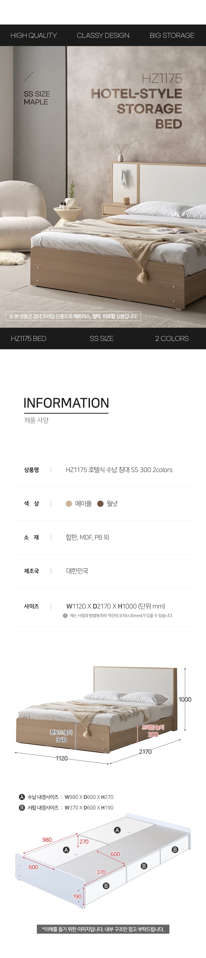 [히트가구] HZ1175 호텔식 수납 침대 SS 300 2colors