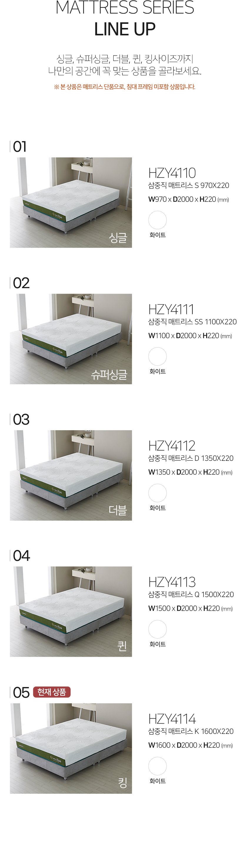 [히트가구] HZY4114 삼중직 매트리스 K 1600×220