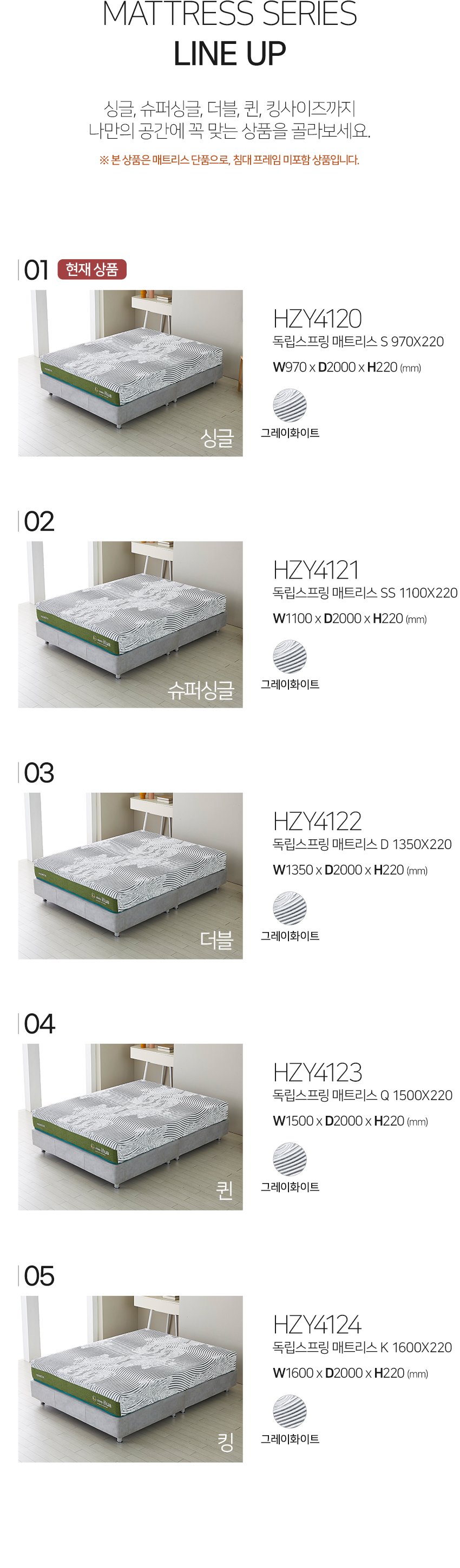 [히트가구] HZY4120 독립스프링 매트리스 S 970×220