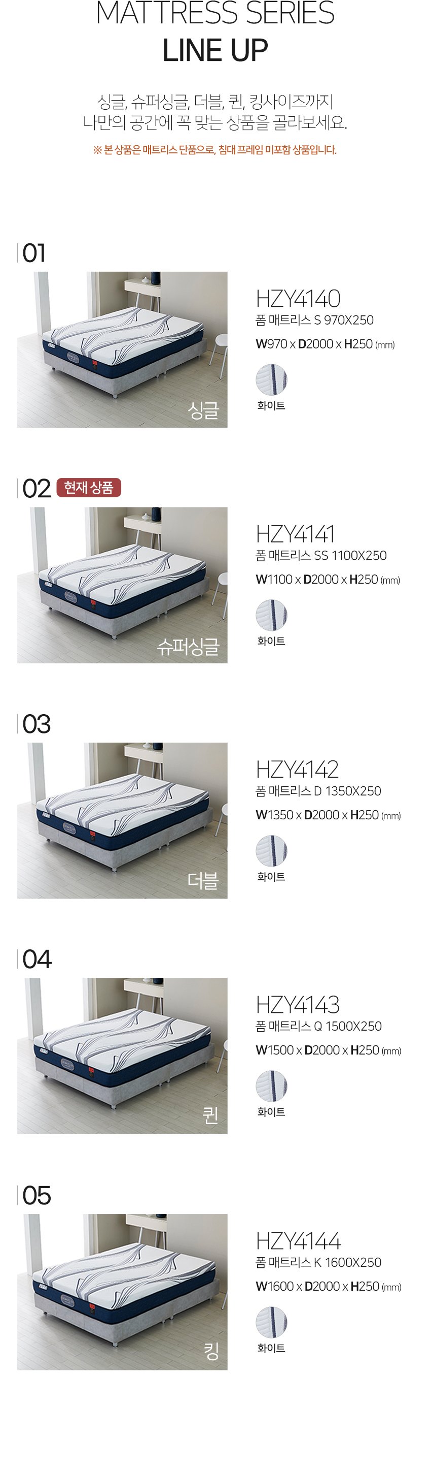 [히트가구] HZY4141 폼 매트리스 SS 1100×250