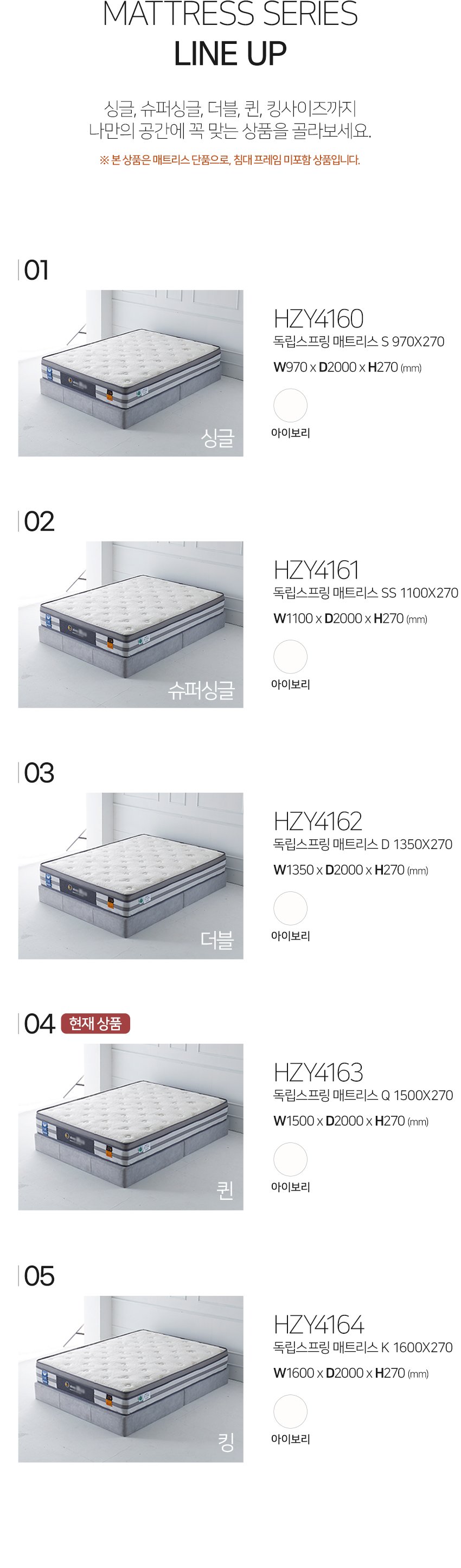[히트가구] HZY4162 독립스프링 매트리스 D 1350x270
