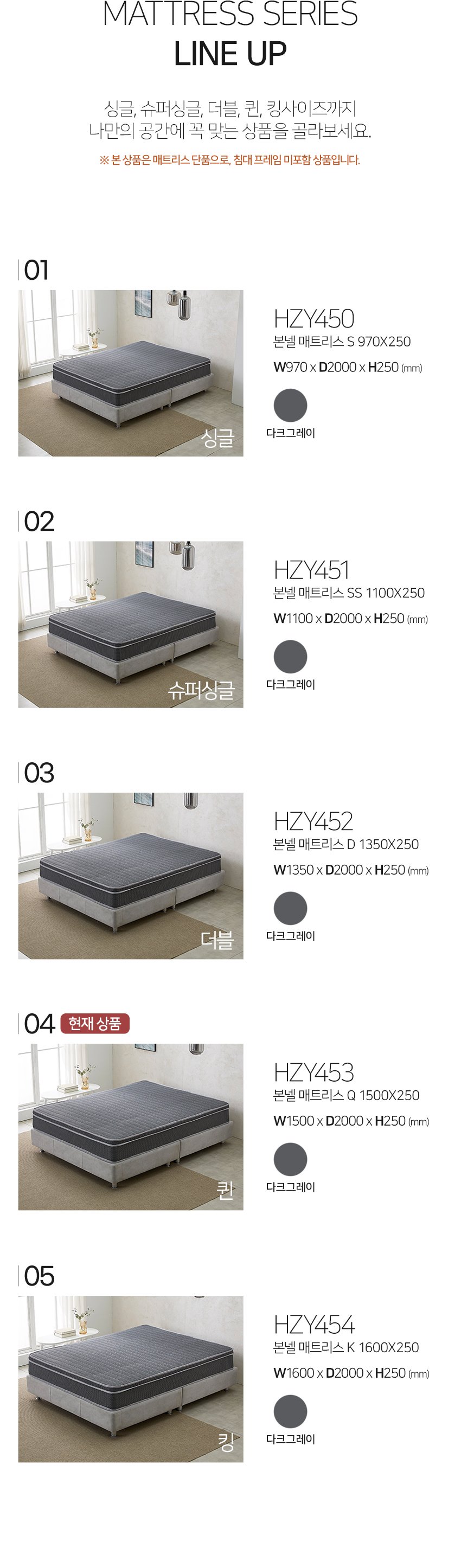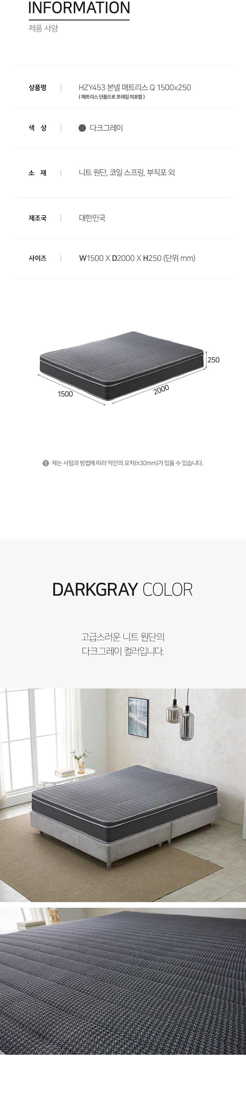 [히트가구] HZY453 본넬 매트리스 Q 1500×250