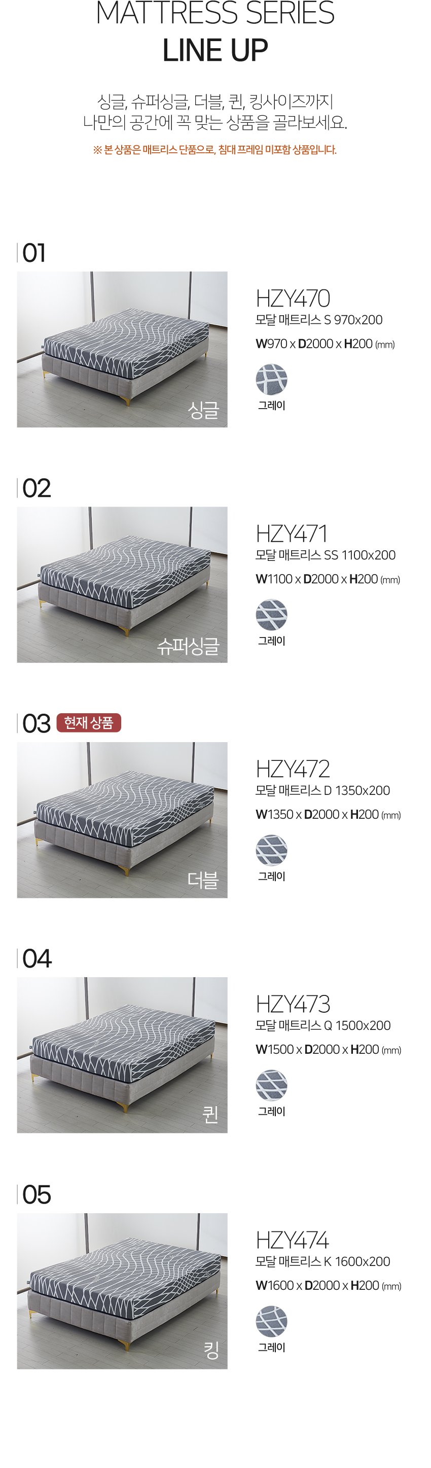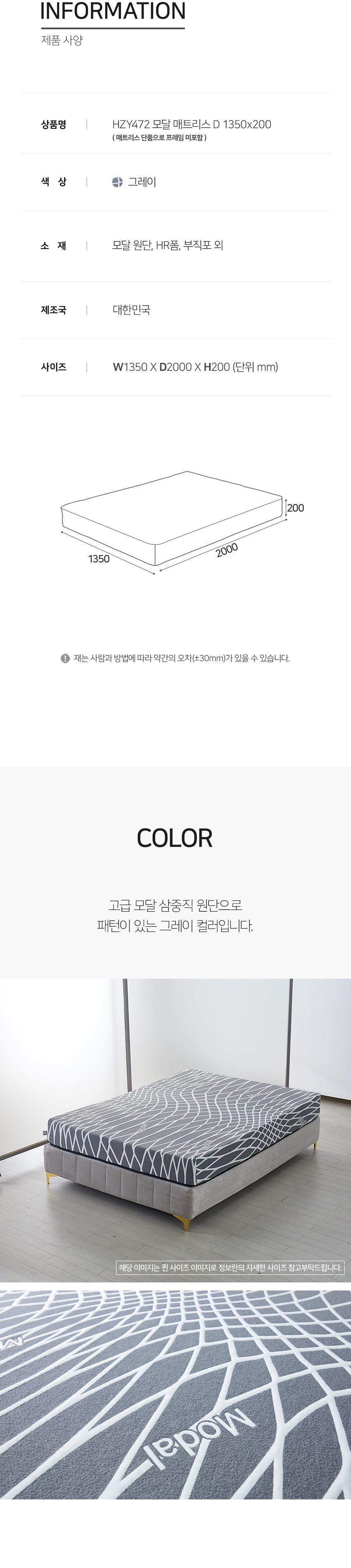 [히트가구] HZY472 모달 매트리스 D 1350×200