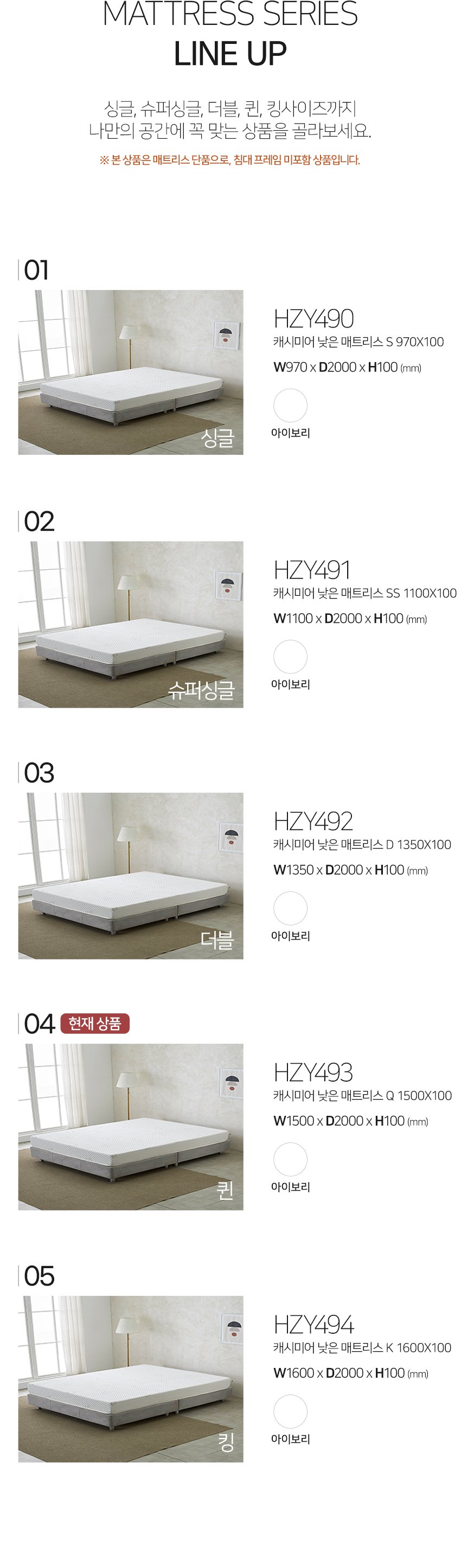 [히트가구] HZY493 캐시미어 낮은 매트리스 Q 1500×100