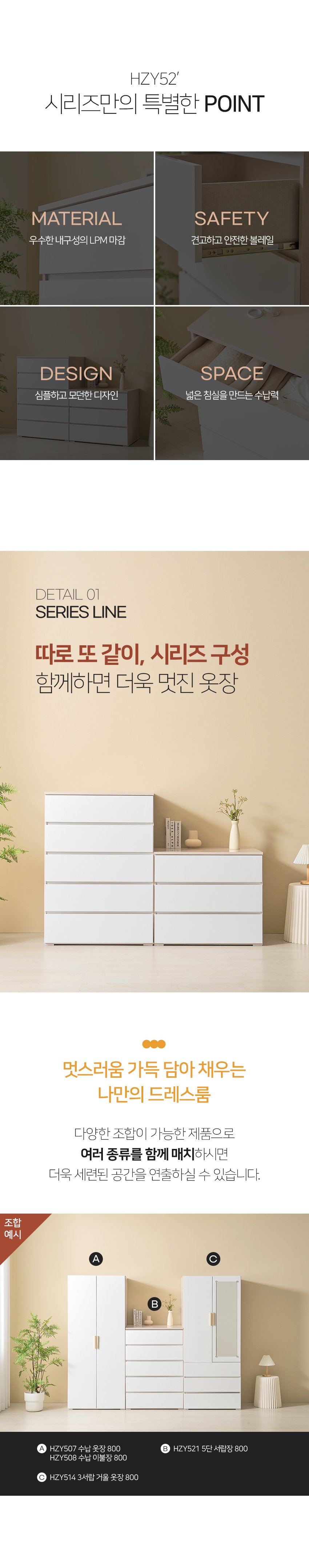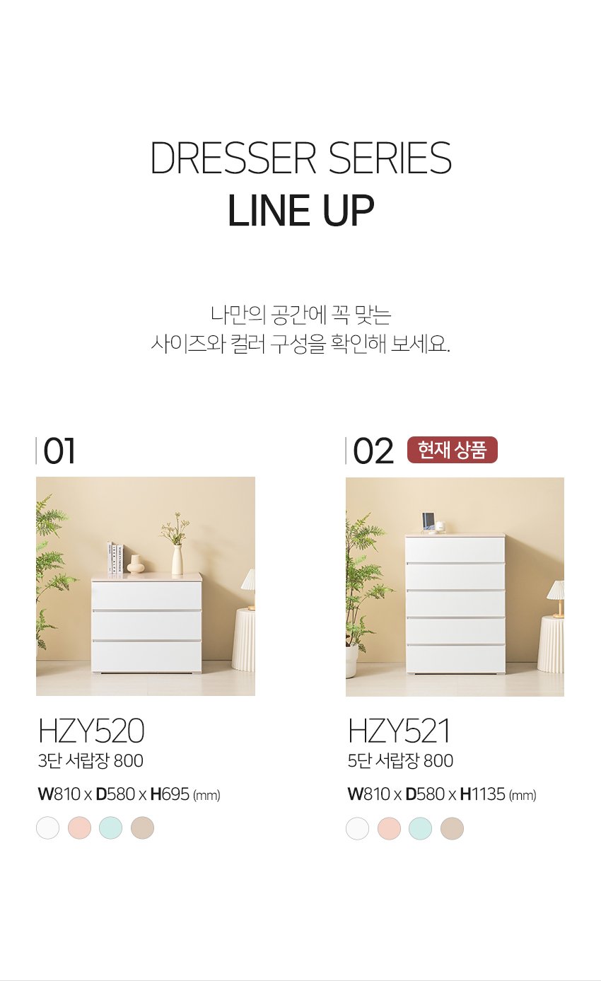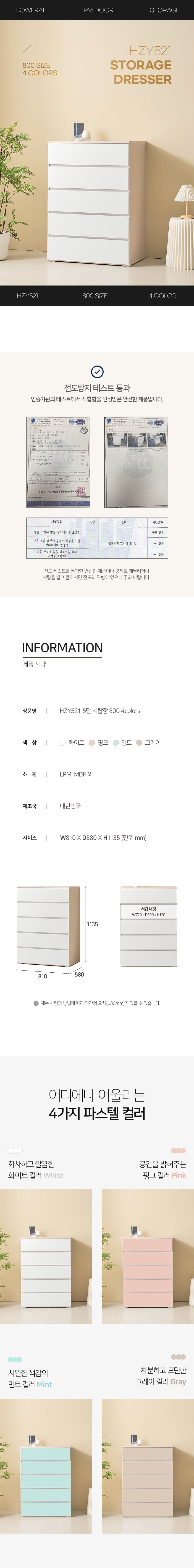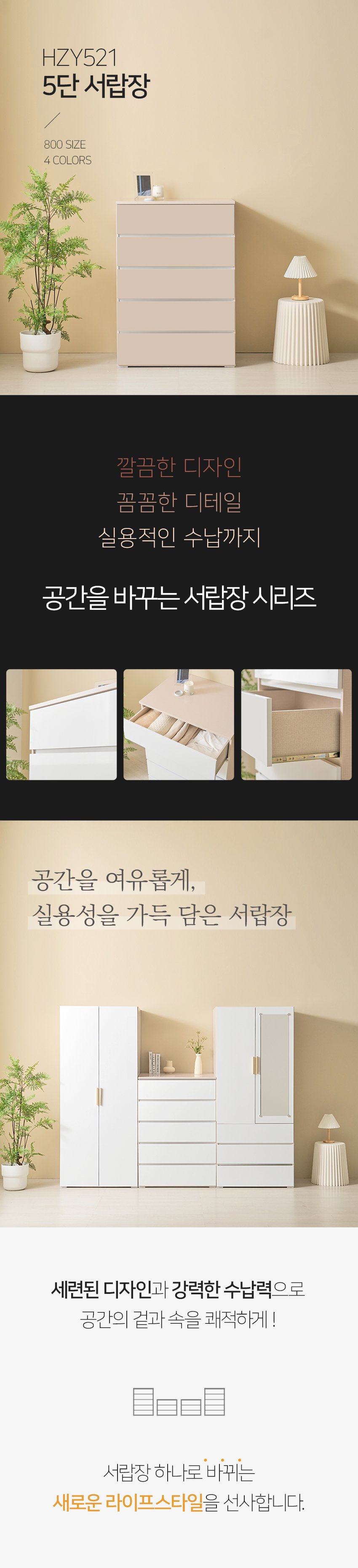 [히트가구] HZY521 5단 서랍장 800 4colors