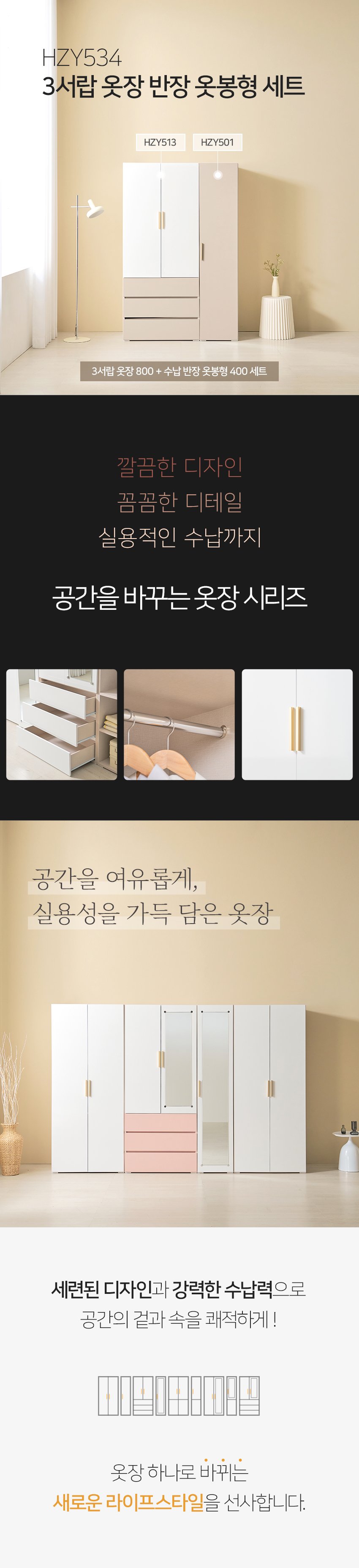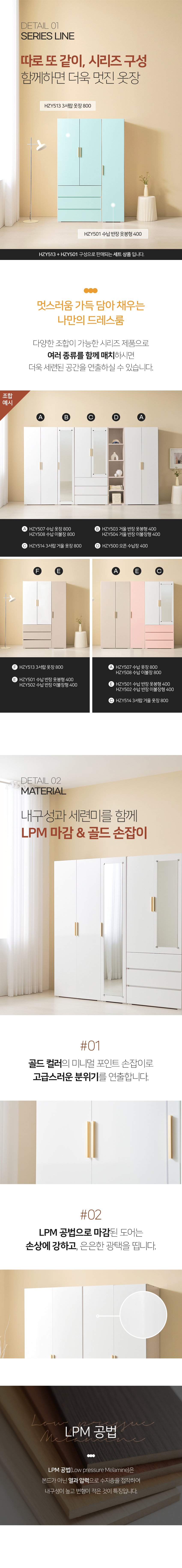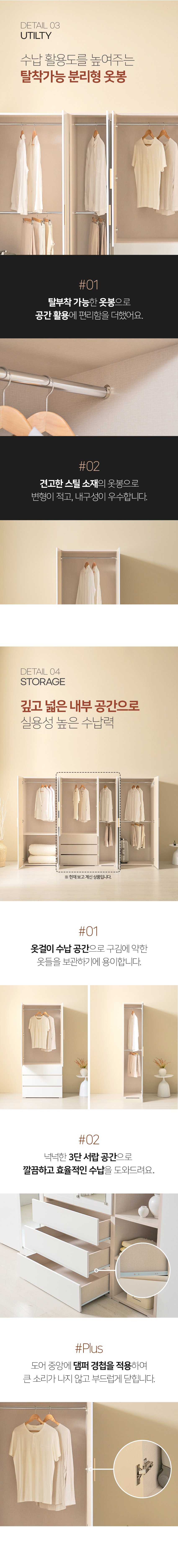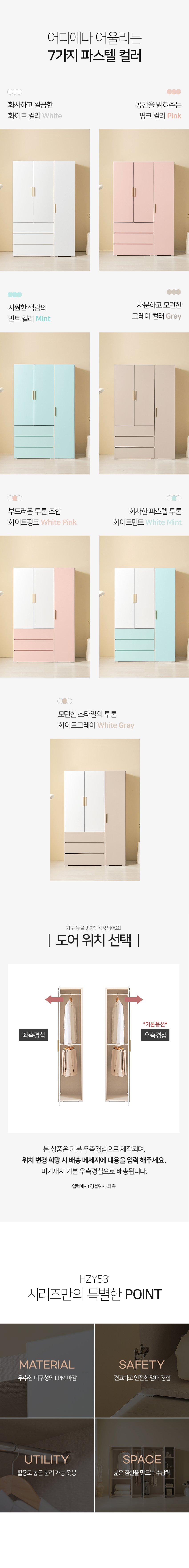 [히트가구] HZY534 3서랍 옷장 반장 옷봉형 세트 1200