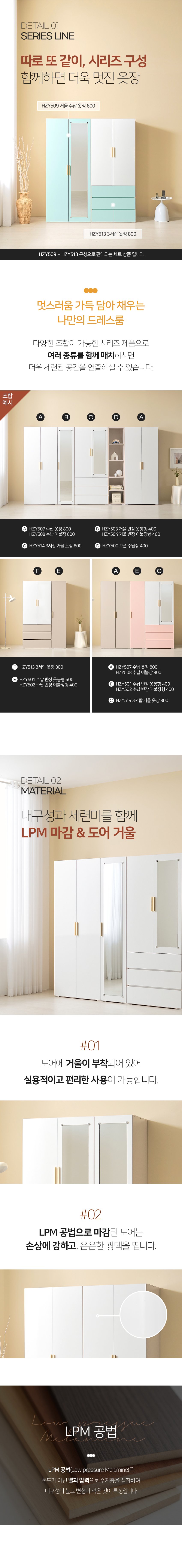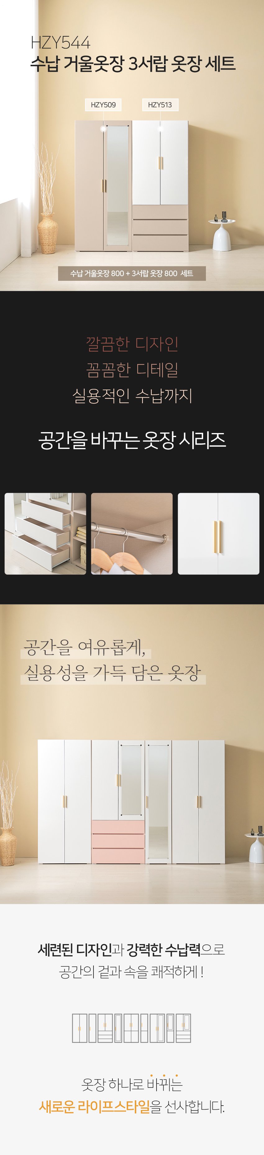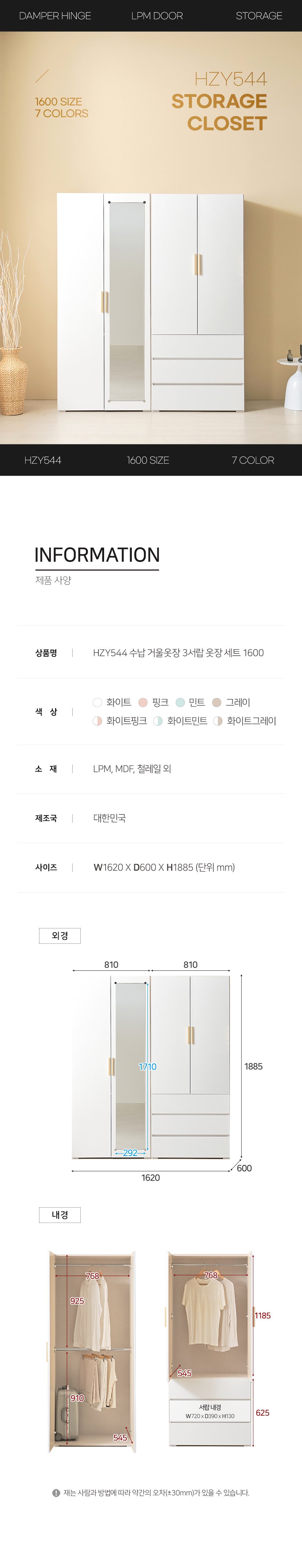 [히트가구] HZY544 수납 거울옷장 3서랍 옷장 세트 1600