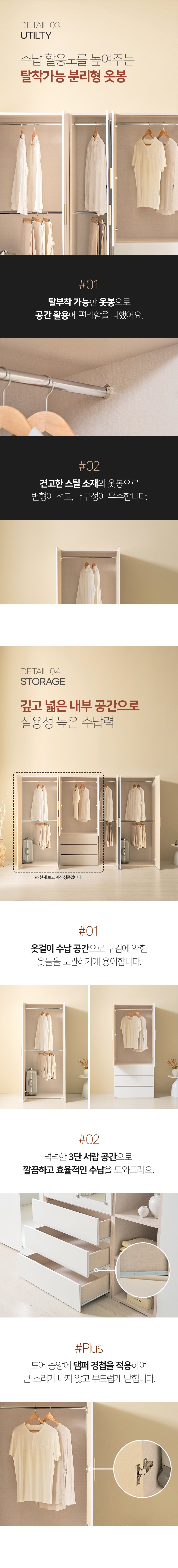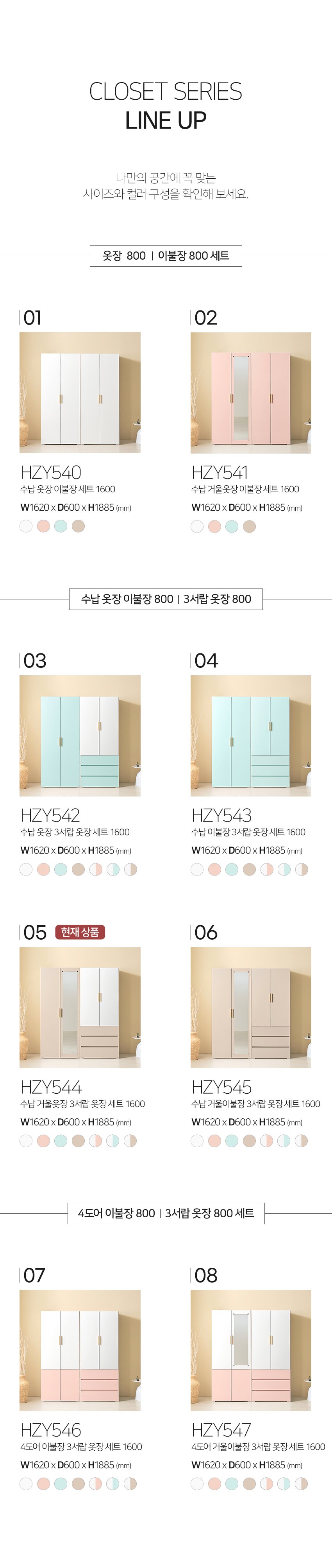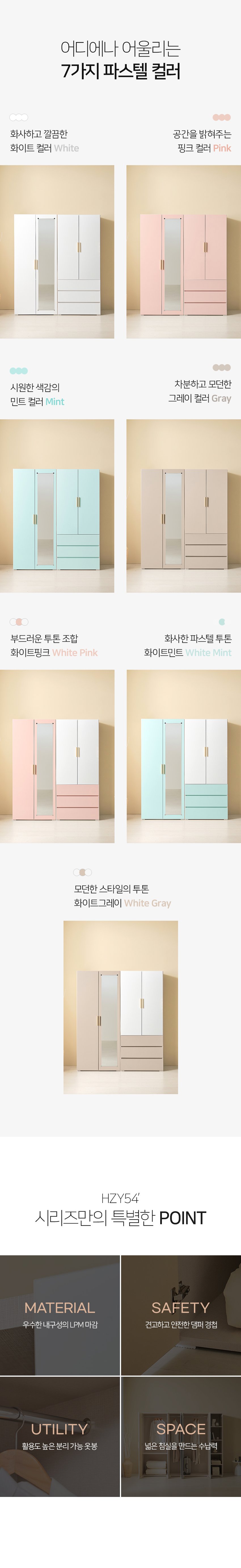 [히트가구] HZY544 수납 거울옷장 3서랍 옷장 세트 1600