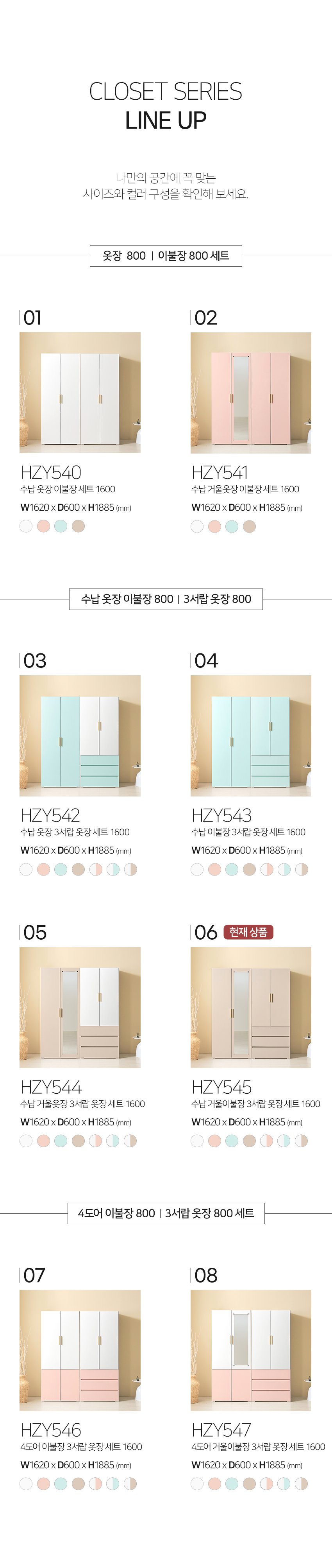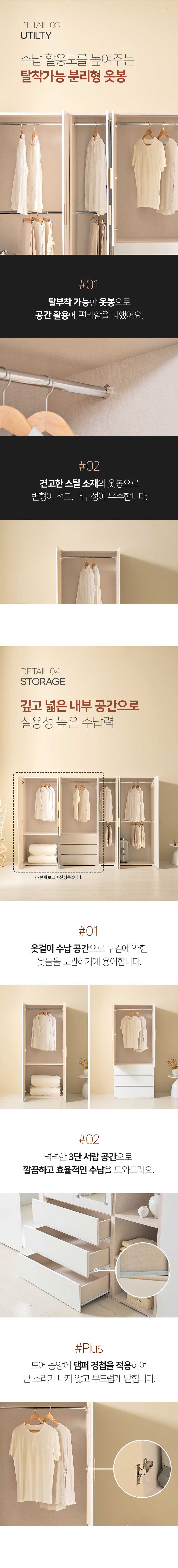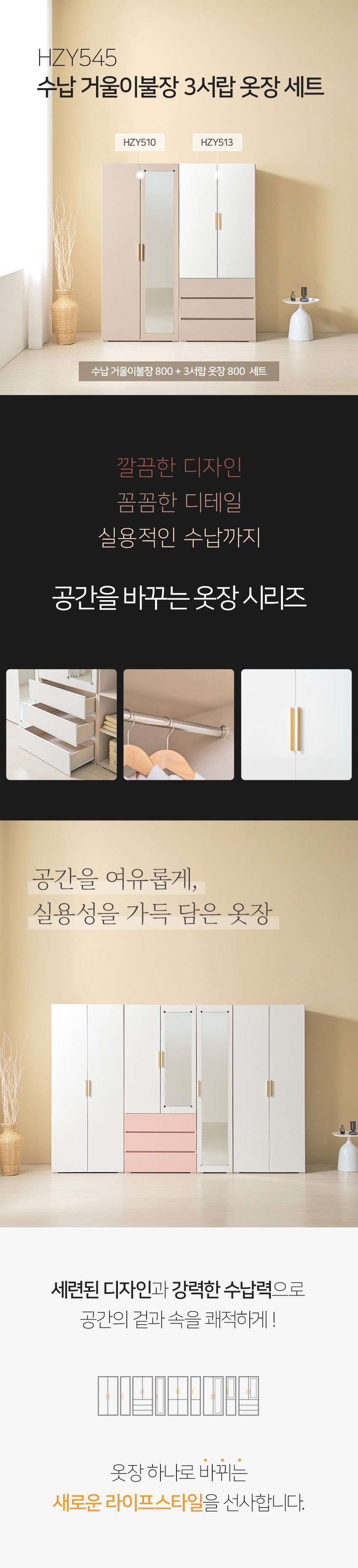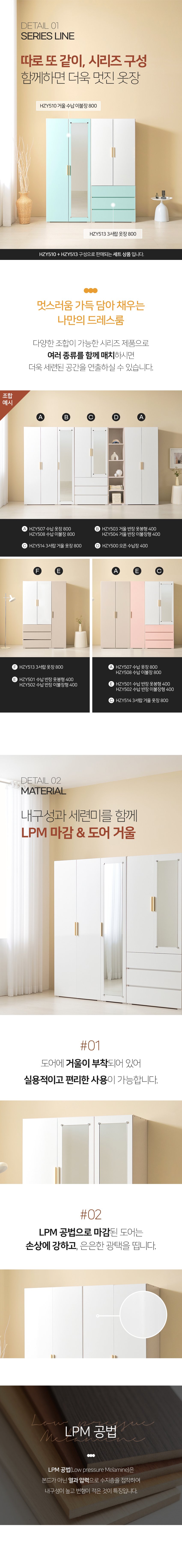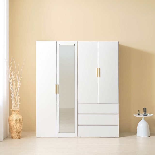 [히트가구] HZY545 수납 거울이불장 3서랍 옷장 세트 1600