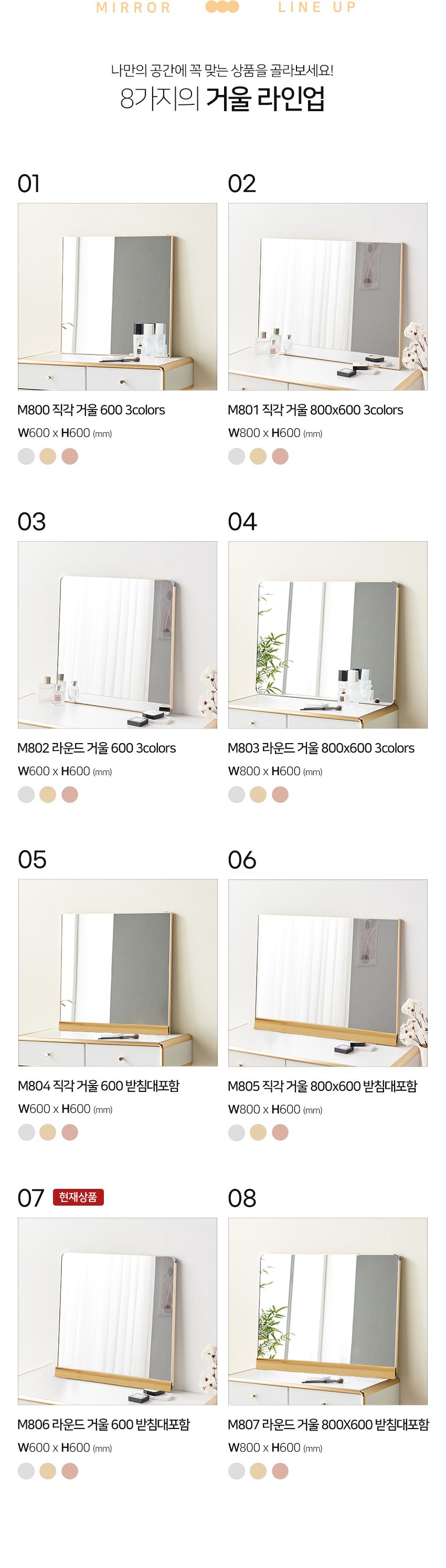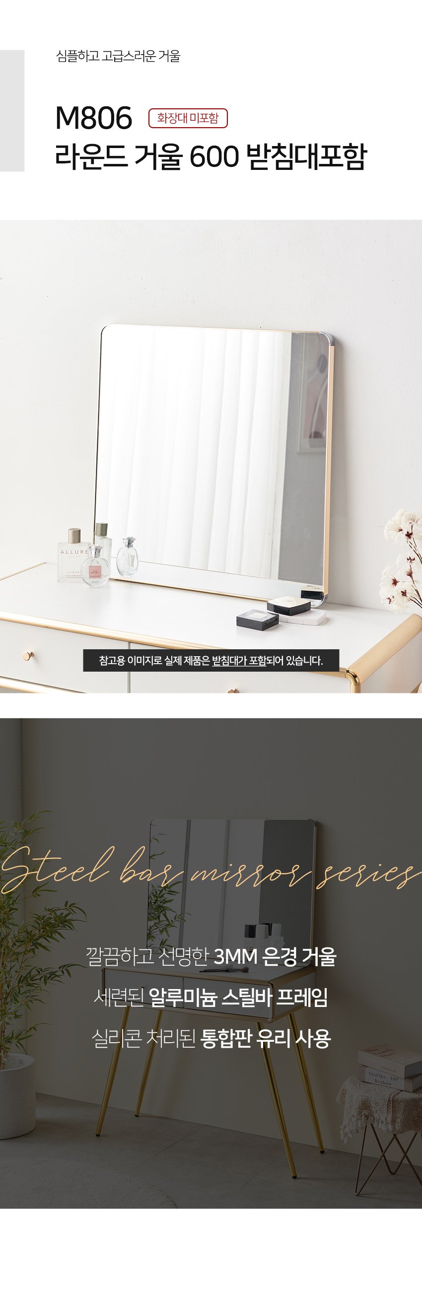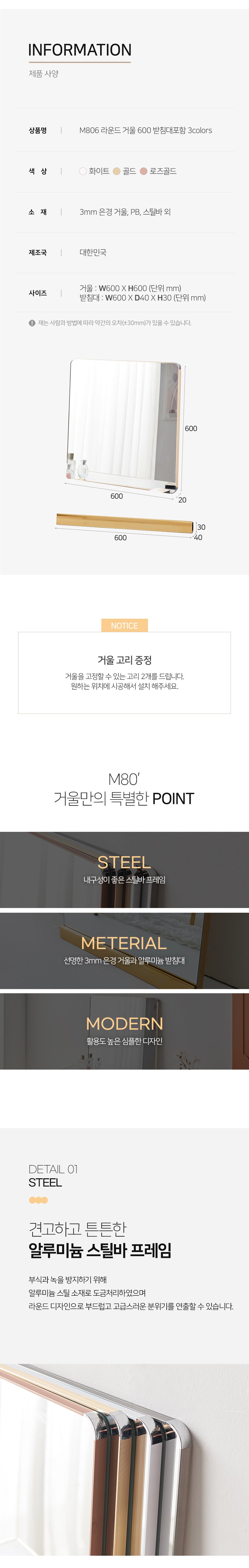 [히트가구] M806 라운드 거울 600 받침대포함 3colors