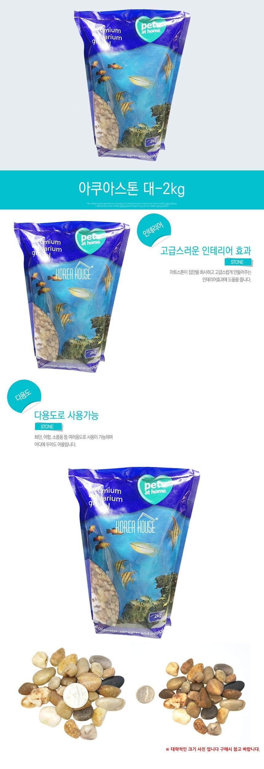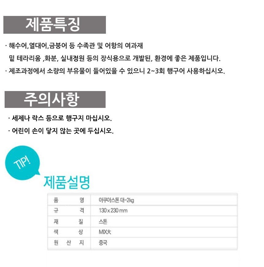 [RS물산]믹스 아쿠아스톤 수족관 바닥재 2kg 대형 수족관용품 수족관악세사리 어항용품 수족관바닥재 수초