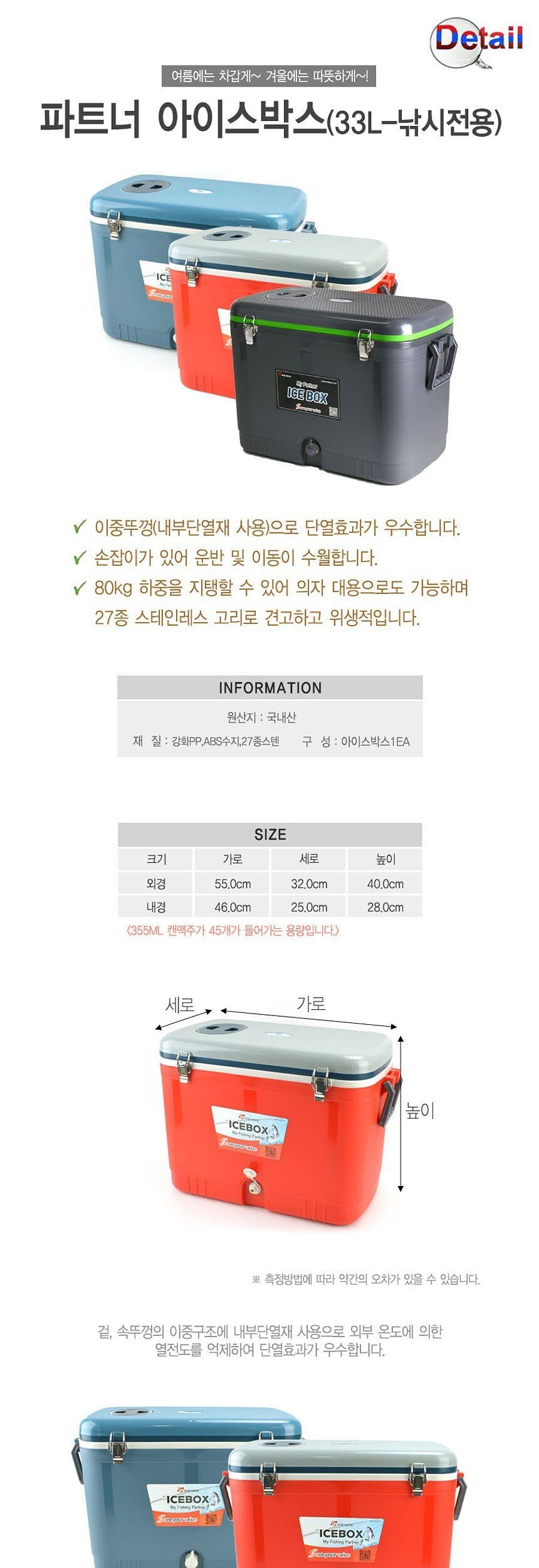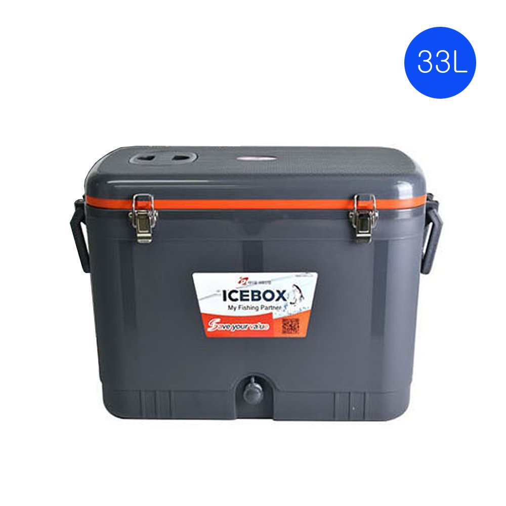 [RS물산] 낚시전용 아이스박스 진회색 오렌지라인 33L 아이스박스 레져박스 캠핑아이스박스 대형아이스박스 휴대용아이스박스 낚시아이스박스