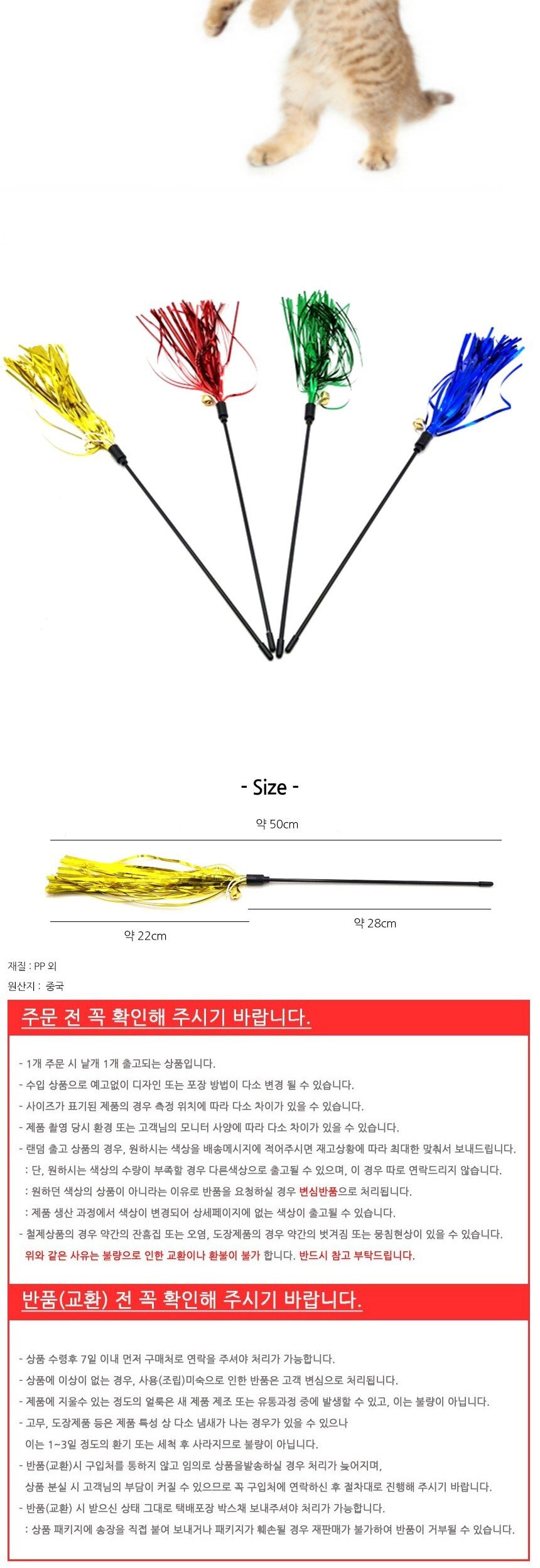 [RS물산] 딸랑딸랑 방울 놀이스틱 고양이장난감 캣 토이 놀이 애묘 반려동물