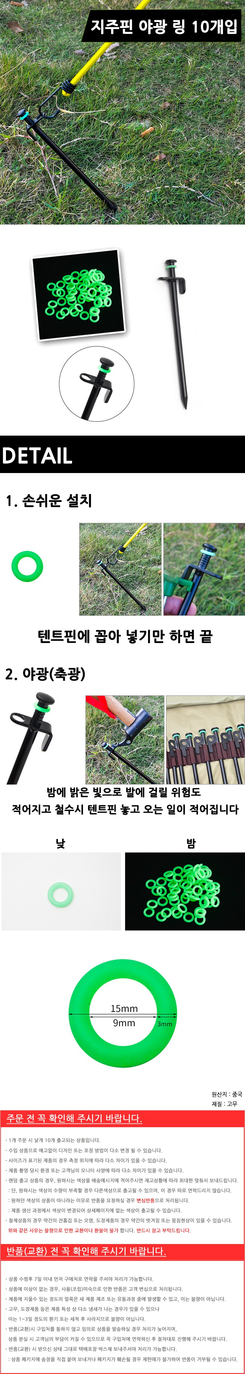 [RS물산] 캠핑 지주핀 야광 링 10개입 안전 데크팩 단조팩 야간캠핑 오링